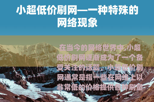 在当今的网络世界中,小超低价刷网逐渐成为了一个备受关注的话题,小超低价刷网通常是指一些在网络上以非常低的价格提供各种刷量服务的平台或网站。