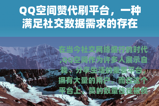 在当今社会,社交网络已经成为人们生活中不可或缺的一部分,QQ空间作为其中的重要一员,承载着人们众多的社交需求和情感寄托,而QQ空间赞代刷平台作为与之相关的一种服务,也在不断地发展和演变。