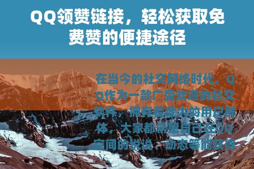通过QQ领赞链接,用户可以在不花费任何金钱的情况下,提升自己在QQ社交圈中的影响力,对于那些喜欢在QQ空间分享生活点滴、心情感悟或者优秀作品的用户来说,免费领赞无疑是一种很好的激励方式,它能让更多的朋友注意到自己的动态,从而引发更多的互动和交流,一位摄影爱好者在QQ空间分享了自己拍摄的一组美丽风景照片,如果能通过领赞链接获得大量的赞,那么就会有更多的朋友来欣赏这些照片,并且可能会在评论区留下赞美和建议,这不仅能让摄影爱好者感受到自己的作品得到了认可,还能促进摄影技术的不断提高。