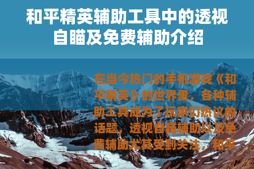 在当今热门的手机游戏《和平精英》的世界里,各种辅助工具成为了玩家们热议的话题,透视自瞄辅助以及免费辅助尤其受到关注。