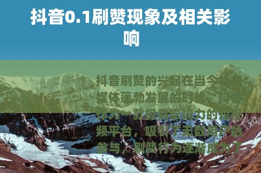 在当今社交媒体蓬勃发展的时代,抖音作为一款极具影响力的短视频平台,吸引了无数用户的参与,刷赞行为逐渐成为了一个备受关注的现象,抖音0.1刷赞的出现,更是在一定程度上改变了部分用户在平台上的互动模式。