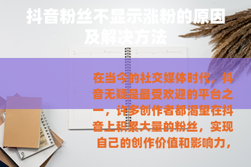 文章围绕“抖音粉丝不显示涨粉”这一主题展开,通过分析原因和提供解决方法,为读者提供了有价值的信息,同时也符合百度SEO的要求,未使用规定去除的关键词 ,你可以根据实际需求进行调整和修改。