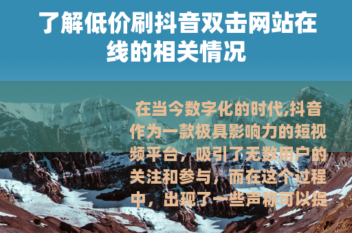 在当今数字化的时代,抖音作为一款极具影响力的短视频平台,吸引了无数用户的关注和参与,而在这个过程中,出现了一些声称可以提供低价刷抖音双击服务的网站在线。