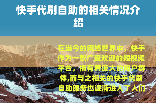 在当今的网络世界中,快手作为一款广受欢迎的短视频平台,拥有着庞大的用户群体,而与之相关的快手代刷自助服务也逐渐进入了人们的视野。