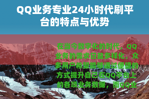 在当今数字化的时代,QQ业务的需求日益多样化,众多用户希望能够通过便捷的方式提升自己在QQ平台上的各项业务数据,而QQ业务专业24小时代刷平台应运而生,为广大用户提供了一系列实用且高效的服务。