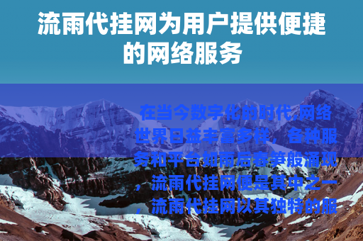 在当今数字化的时代,网络世界日益丰富多样,各种服务和平台如雨后春笋般涌现,流雨代挂网便是其中之一。