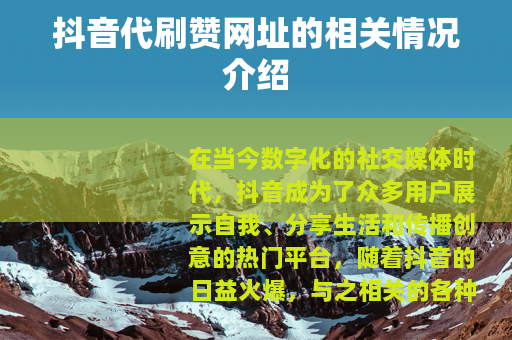 在当今数字化的社交媒体时代,抖音成为了众多用户展示自我、分享生活和传播创意的热门平台,随着抖音的日益火爆,与之相关的各种服务和现象也不断涌现,其中抖音代刷赞网址就是一个备受关注的话题。