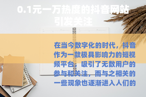 在当今数字化的时代,抖音作为一款极具影响力的短视频平台,吸引了无数用户的参与和关注,而与之相关的一些现象也逐渐进入人们的视野,其中就包括声称0.1元一万热度的抖音网站。