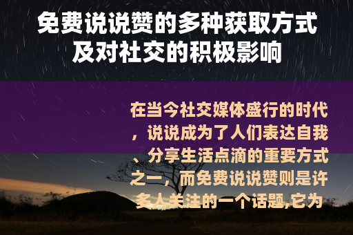 在当今社交媒体盛行的时代,说说成为了人们表达自我、分享生活点滴的重要方式之一,而免费说说赞则是许多人关注的一个话题,它为用户的社交体验增添了不少乐趣和价值。