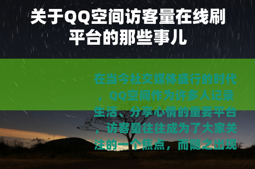 在当今社交媒体盛行的时代,QQ空间作为许多人记录生活、分享心情的重要平台,访客量往往成为了大家关注的一个焦点,而随之出现的QQ空间访客量在线刷平台,也引起了不少人的兴趣。
