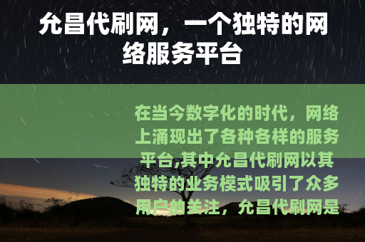 在当今数字化的时代,网络上涌现出了各种各样的服务平台,其中允昌代刷网以其独特的业务模式吸引了众多用户的关注。