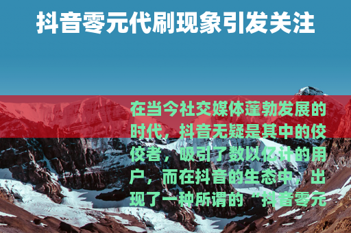 在当今社交媒体蓬勃发展的时代,抖音无疑是其中的佼佼者,吸引了数以亿计的用户,而在抖音的生态中,出现了一种所谓的“抖音零元代刷”现象,引起了众多用户的兴趣和讨论。