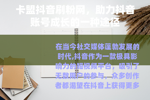 在当今社交媒体蓬勃发展的时代,抖音作为一款极具影响力的短视频平台,吸引了无数用户的参与,众多创作者都渴望在抖音上获得更多的关注和粉丝,以实现自身价值和商业目标,而卡盟抖音刷粉网,便在这样的需求下应运而生,为抖音用户提供了一种增加粉丝数量的方式。