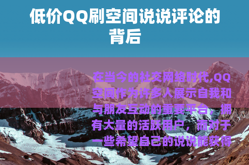 在当今的社交网络时代,QQ空间作为许多人展示自我和与朋友互动的重要平台,拥有大量的活跃用户,而对于一些希望自己的说说能获得更多关注和评论的人来说,低价QQ刷空间说说评论的服务便应运而生。