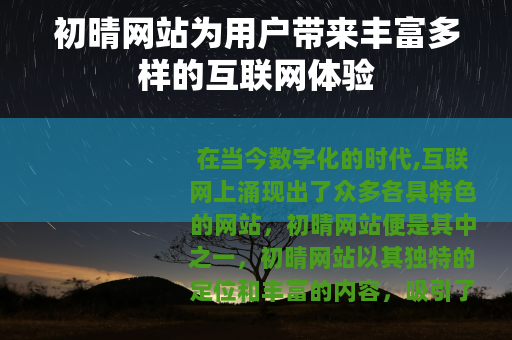 在当今数字化的时代,互联网上涌现出了众多各具特色的网站,初晴网站便是其中之一,初晴网站以其独特的定位和丰富的内容,吸引了大量用户的关注和喜爱。