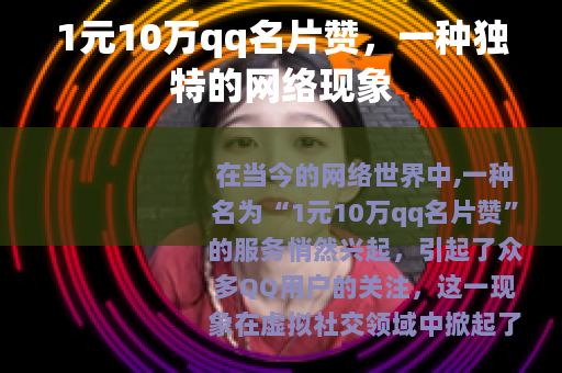 在当今的网络世界中,一种名为“1元10万qq名片赞”的服务悄然兴起,引起了众多QQ用户的关注,这一现象在虚拟社交领域中掀起了一阵小小的波澜,为用户们带来了一种全新的社交体验和满足感。