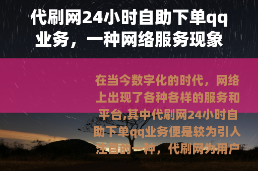 在当今数字化的时代,网络上出现了各种各样的服务和平台,其中代刷网24小时自助下单qq业务便是较为引人注目的一种。