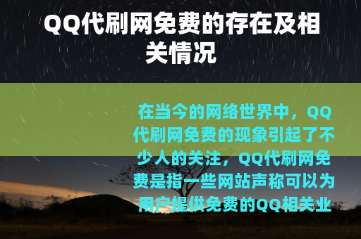 在当今的网络世界中,QQ代刷网免费的现象引起了不少人的关注,QQ代刷网免费是指一些网站声称可以为用户提供免费的QQ相关业务代刷服务,如QQ空间点赞、评论、QQ等级提升等。