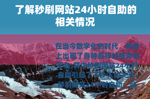 在当今数字化的时代,网络上出现了各种各样的服务和平台,其中秒刷网站24小时自助引起了不少人的关注。