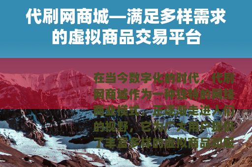 在当今数字化的时代,代刷网商城作为一种独特的网络商业模式,正逐渐走进人们的视野,它为广大用户提供了丰富多样的虚拟商品和服务,满足了不同人群在网络世界中的各种需求。