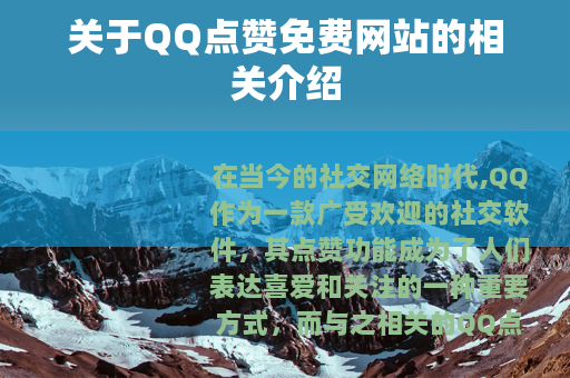 在当今的社交网络时代,QQ作为一款广受欢迎的社交软件,其点赞功能成为了人们表达喜爱和关注的一种重要方式,而与之相关的QQ点赞免费网站也应运而生,吸引了众多用户的目光。