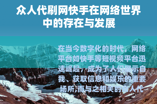 在当今数字化的时代,网络平台如快手等短视频平台迅速崛起,成为了人们展示自我、获取信息和娱乐的重要场所,而与之相关的众人代刷网快手也逐渐进入了大众的视野。