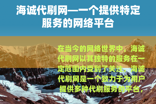 在当今的网络世界中,海诚代刷网以其独特的服务在一定范围内受到了关注,海诚代刷网是一个致力于为用户提供多种代刷服务的平台,它涵盖了诸如社交平台的点赞、评论、粉丝增长,以及各类视频平台的播放量提升等业务。