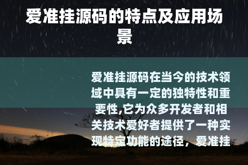 我们可以看到,爱准挂源码在游戏开发、企业级应用、教育、移动应用等多个领域都有着不可忽视的作用,它不仅为开发者提供了便利,也为用户带来了更好的体验,在未来,我们期待它能够不断发展壮大,在更多的领域展现出其独特的魅力和价值。