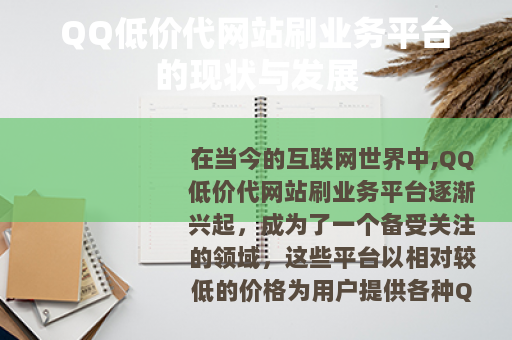 在当今的互联网世界中,QQ低价代网站刷业务平台逐渐兴起,成为了一个备受关注的领域,这些平台以相对较低的价格为用户提供各种QQ业务的代刷服务,如QQ空间人气、QQ黄钻、QQ会员等,吸引了众多QQ用户的目光。