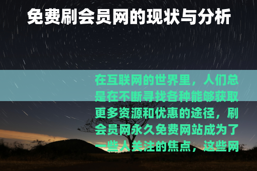 在互联网的世界里,人们总是在不断寻找各种能够获取更多资源和优惠的途径,刷会员网永久免费网站成为了一些人关注的焦点,这些网站声称可以为用户提供各大平台的会员服务,而且无需支付任何费用,这无疑对众多网民具有很大的吸引力。