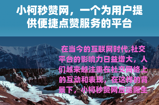 在当今的互联网时代,社交平台的影响力日益增大,人们越来越注重在社交网络上的互动和表现,在这样的背景下,小柯秒赞网应运而生,为广大用户提供了一种独特的服务体验。