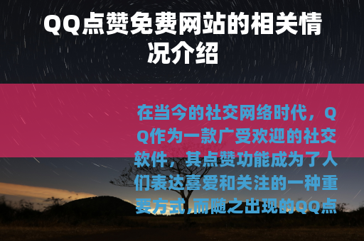 在当今的社交网络时代,QQ作为一款广受欢迎的社交软件,其点赞功能成为了人们表达喜爱和关注的一种重要方式,而随之出现的QQ点赞免费网站也引起了不少用户的兴趣。