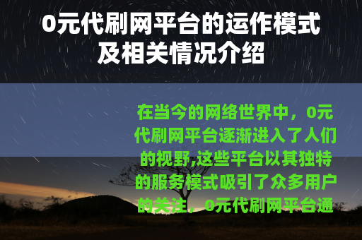 在当今的网络世界中,0元代刷网平台逐渐进入了人们的视野,这些平台以其独特的服务模式吸引了众多用户的关注。