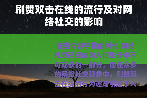 在当今数字化的时代,网络社交已经成为人们生活中不可或缺的一部分,而在众多的网络社交现象中,刷赞双击在线的行为逐渐引起了人们的广泛关注。