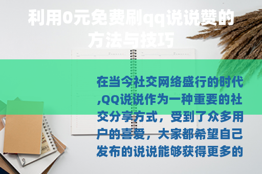 在当今社交网络盛行的时代,QQ说说作为一种重要的社交分享方式,受到了众多用户的喜爱,大家都希望自己发布的说说能够获得更多的赞,以此来展示自己的人气和生活点滴的受欢迎程度,而0元免费刷qq说说赞的方式,更是吸引了不少人的关注。