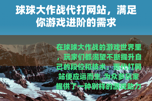 球球大作战作为一款极具趣味性和竞技性的手游,吸引了大量玩家投身其中,随着游戏的发展,竞争也日益激烈,想要在游戏中取得优异成绩并非易事,这时候,代打网站就成为了不少玩家关注的焦点,这些代打网站通常汇聚了一批技术精湛的游戏高手,他们拥有丰富的游戏经验和出色的操作技巧,能够帮助玩家在游戏中实现段位的快速提升。
