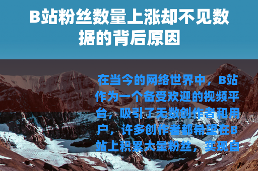 在当今的网络世界中,B站作为一个备受欢迎的视频平台,吸引了无数创作者和用户,许多创作者都希望在B站上积累大量粉丝,实现自己的创作价值,有些创作者会遇到这样一个奇怪的现象:明明看到自己的B站粉丝数量在不断上涨,可在数据分析中却看不到相应的数据体现,这究竟是为什么呢?
