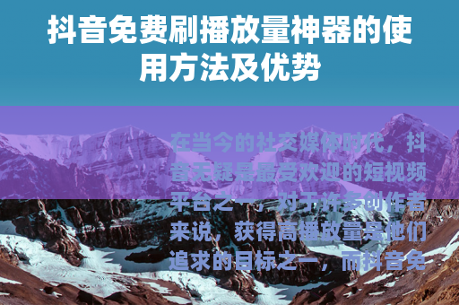 在当今的社交媒体时代,抖音无疑是最受欢迎的短视频平台之一,对于许多创作者来说,获得高播放量是他们追求的目标之一,而抖音免费刷播放量神器的出现,为他们提供了一种新的途径。
