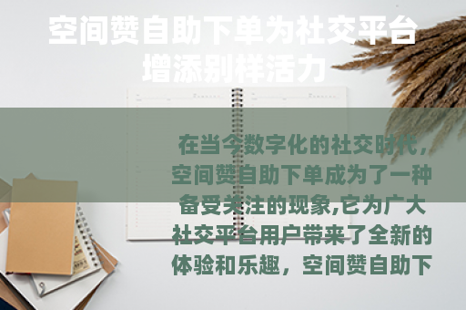 在当今数字化的社交时代,空间赞自助下单成为了一种备受关注的现象,它为广大社交平台用户带来了全新的体验和乐趣。