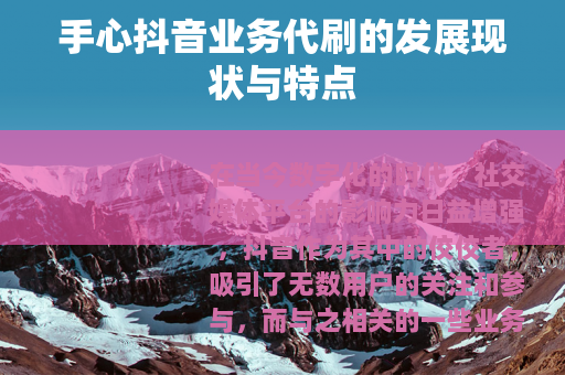 在当今数字化的时代,社交媒体平台的影响力日益增强,抖音作为其中的佼佼者,吸引了无数用户的关注和参与,而与之相关的一些业务也随之兴起,手心抖音业务代刷便是其中之一。
