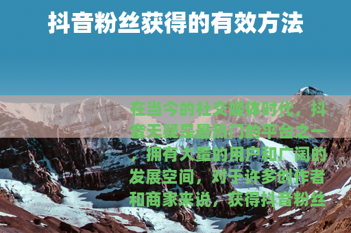 在当今的社交媒体时代,抖音无疑是最热门的平台之一,拥有大量的用户和广阔的发展空间,对于许多创作者和商家来说,获得抖音粉丝成为了一个重要的目标,因为粉丝数量不仅代表着人气,还能为后续的发展和变现提供有力支持。
