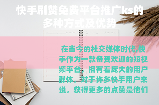 在当今的社交媒体时代,快手作为一款备受欢迎的短视频平台,拥有着庞大的用户群体,对于许多快手用户来说,获得更多的点赞是他们提升自己作品影响力和知名度的重要目标之一,而快手刷赞免费平台推广ks便应运而生,为用户提供了一种有效的推广途径。