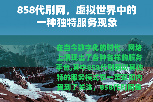 在当今数字化的时代,网络上涌现出了各种各样的服务平台,其中858代刷网以其独特的服务模式在一定范围内受到了关注。