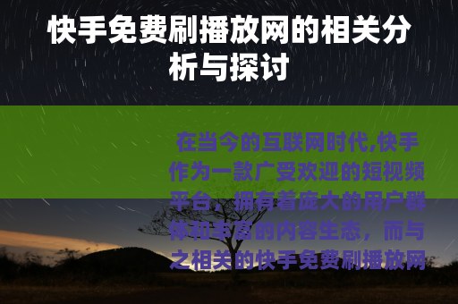 在当今的互联网时代,快手作为一款广受欢迎的短视频平台,拥有着庞大的用户群体和丰富的内容生态,而与之相关的快手免费刷播放网也逐渐进入了人们的视野。