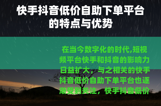在当今数字化的时代,短视频平台快手和抖音的影响力日益扩大,与之相关的快手抖音低价自助下单平台也逐渐受到关注。