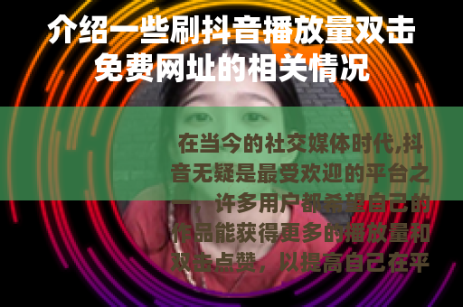 在当今的社交媒体时代,抖音无疑是最受欢迎的平台之一,许多用户都希望自己的作品能获得更多的播放量和双击点赞,以提高自己在平台上的影响力和知名度,刷抖音播放量双击免费网址便应运而生,吸引了不少人的关注。
