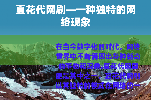 在当今数字化的时代,网络世界中不断涌现出各种新奇的事物和现象,夏花代网刷便是其中之一。