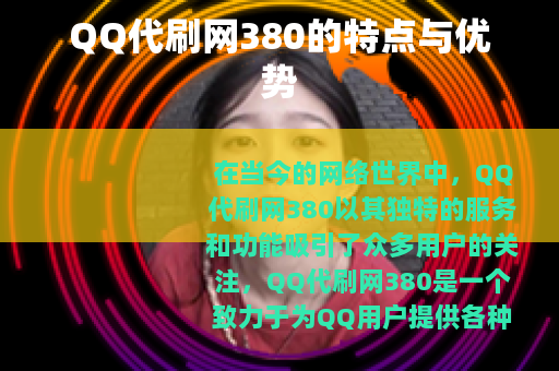 在当今的网络世界中,QQ代刷网380以其独特的服务和功能吸引了众多用户的关注,QQ代刷网380是一个致力于为QQ用户提供各种代刷业务的平台,它涵盖了丰富多样的服务项目,满足了不同用户的需求。