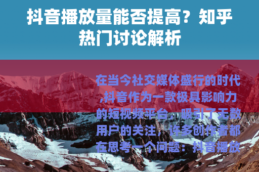 在当今社交媒体盛行的时代,抖音作为一款极具影响力的短视频平台,吸引了无数用户的关注,许多创作者都在思考一个问题:抖音播放量能不能提高呢?这个问题在知乎等平台上也引发了热烈的讨论。