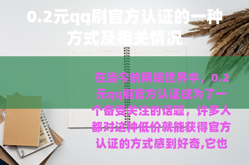 在当今的网络世界中,0.2元qq刷官方认证成为了一个备受关注的话题,许多人都对这种低价就能获得官方认证的方式感到好奇,它也在一定程度上满足了部分用户希望提升自己qq账号权威性和可信度的需求。